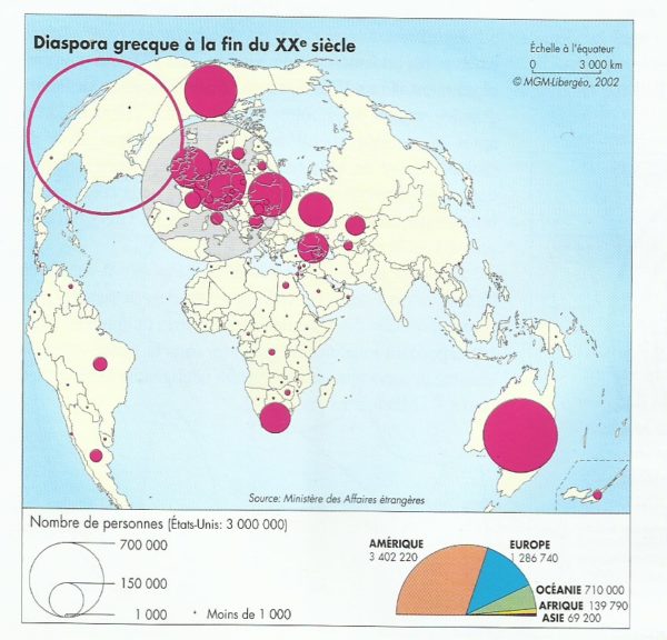 Si les Grecs ne sont que 10 millions à l’intérieur de leurs frontières balkaniques, ils constituent une diaspora bien organisée sur l’ensemble de la planète. Attirés par les « pays neufs » au XIXe siècle, ils sont nombreux entre les années 50 et 70 du XXe siècle à s’expatrier, pour des raisons économiques, dans des Etats européens tels que l’Allemagne, la Belgique, la Suède …. Depuis cette période un certain nombre d’expatriés sont rentrés au pays.