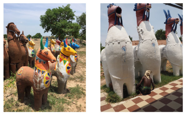 Chevaux d’argile produits dans la région du Chettinad, Tamil Nadu. Photo : N.Bautès, 2020.